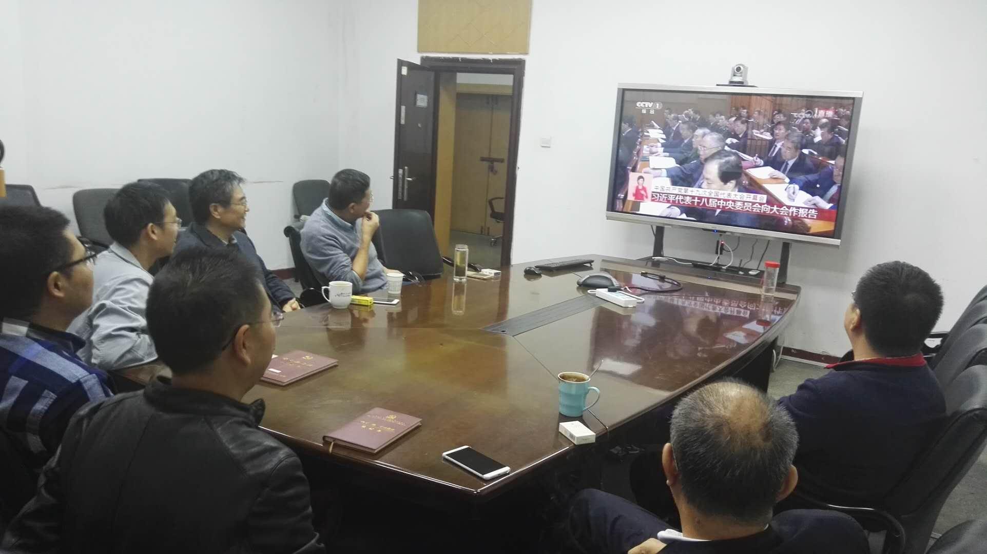 在各个教研室,各党支部的教职工们凝视着大屏幕,仔细聆听习近平总书记的报告,共同聚焦十九大。