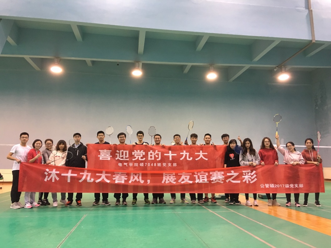 党的十九大召开以来,电气学院积极筹划、组织多种形式的专题学习研讨活动。为了进一步营造十九大精神学习氛围,深化理论认识,加强不同学院、不同学科之间的交流协作,提升党员的身体素质,10月22日下午,硕7048党支部联合公管学院2017级新生党支部在交大体育馆共同开展了一场羽毛球联谊赛。本次活动本着友谊第一、比赛第二的原则,欢迎支部同学踊跃报名参加,体育馆中同学们激情飞扬的身影尽显交大学子的青春与活力。