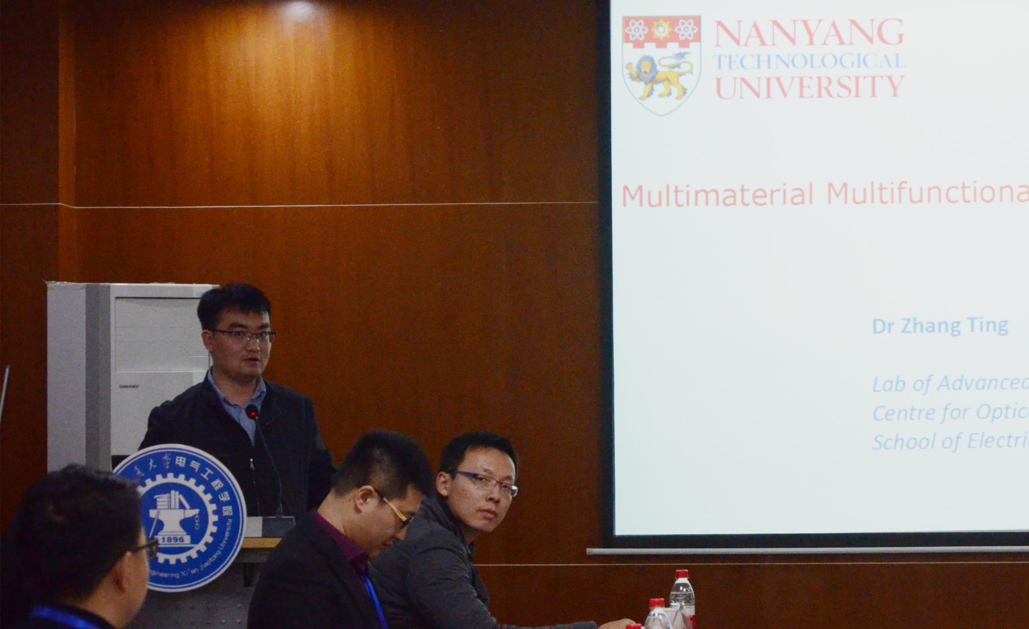 来自于新加坡南洋理工大学的张挺研究员,他一直致力于纳米功能材料、热电能量转换材料与器件、微纳热传导以及基于先进功能光纤或纤维的课穿戴柔性电子设备等方面的研究工作。在此次会议中,他对纳米功能材料在光电纤维、化学传感纤维、热电转换纤维、纤维电容器以及生物医疗检测等方面的应用分别进行了介绍。