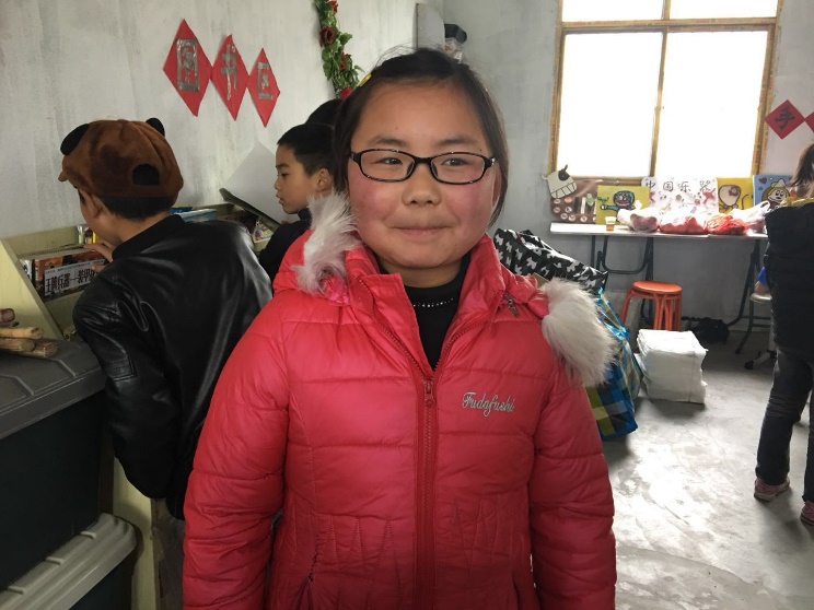 物品捐赠完毕,老师们简要地用过午餐。午餐期间,我们对一个留守儿童进行采访。她叫张琦梦,今年十岁,上四年级。她说她在这里很快乐,在这里吃得比家里好,十分感谢“妈妈(马妮)”,觉得她很辛苦。她说她喜欢物理,喜欢阅读名著,喜欢跳绳,她希望将来能考到西安交通大学。