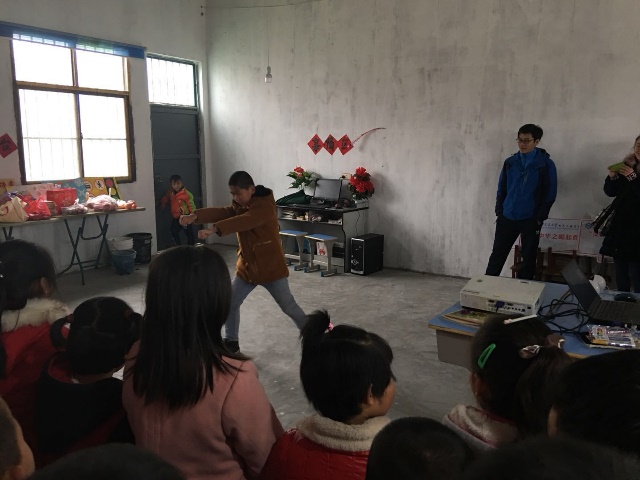 饭后,大家又聚集在活动室,参与此次活动的西交学生及老师给孩子们将名言故事。