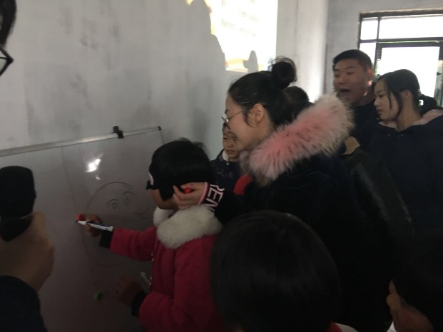 然后,电气学院老师们准备了一系列游戏,与孩子们进行互动。抢凳子、闭眼画五官、你画我猜、萝卜蹲……孩子们积极踊跃,玩得十分开心,活动室里时不时地爆发一阵阵快乐的笑声。游戏结束后,孩子们对老师们的到来表达了诚挚的感谢,最后大家一起合影留念,留下这开心时刻。走时,孩子们还纷纷拥抱了“木子叔叔“。